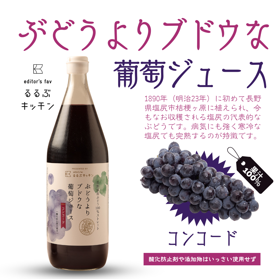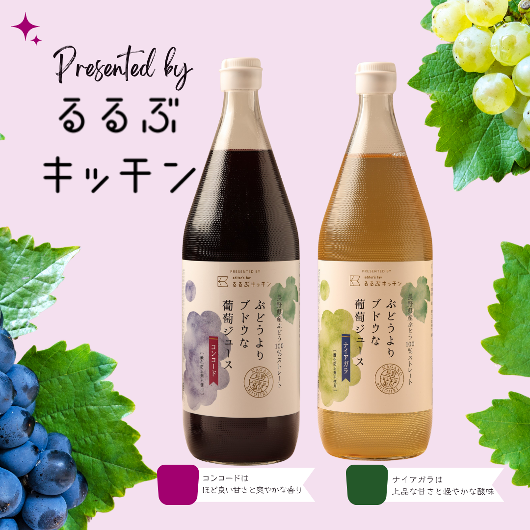 るるぶキッチン ぶどうよりブドウな葡萄ジュース コンコード&ナイアガラ 100%完熟果汁 無添加ジュース 1000ml
