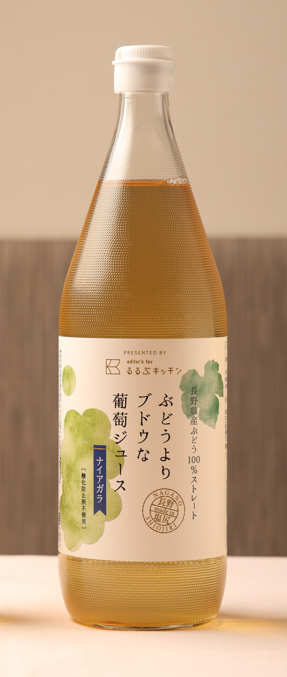 このたび、PB商品として2018年の発売開始以来ご好評をいただいている「『りんごよりリンゴな林檎ジュース』 Presented by るるぶキッチン」に続く第二弾として「『ぶどうよりブドウな葡萄ジュース』Presented by るるぶキッチン」