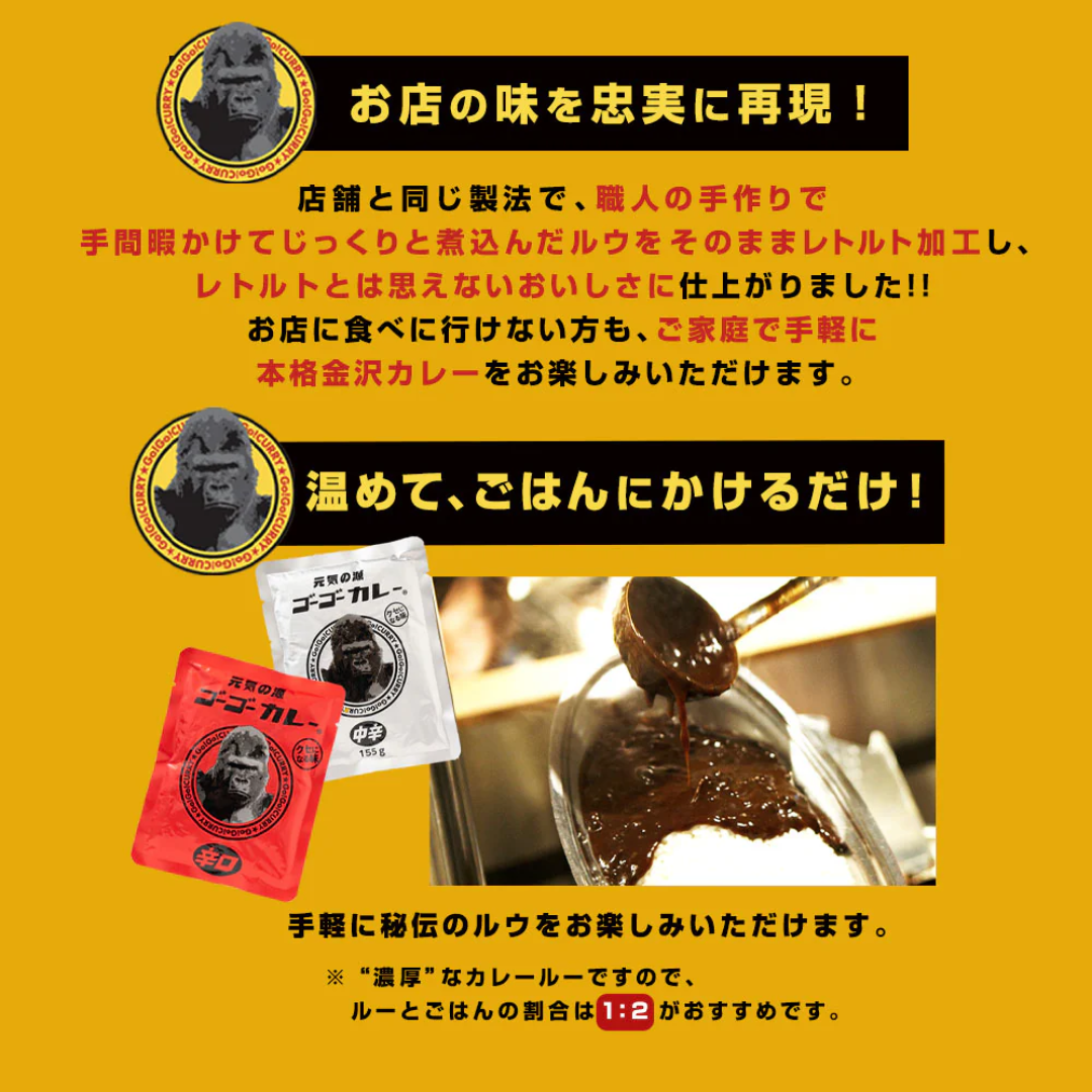 GoGoCurry - ゴーゴーカレー 中辛 (レトルトパウチ2食入り) 155g×2袋 金沢カレーブームの火付け役!お店の味をご家庭で楽しめます