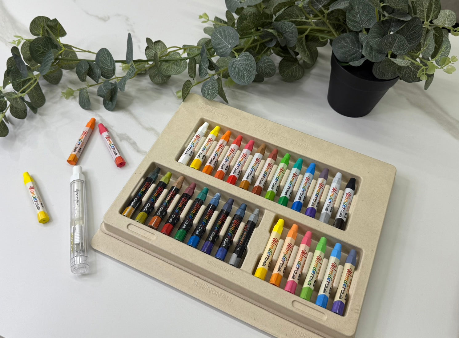 炭酸チョーク、水溶性ワンダーチョーク、クレヨンなど多用途に使える万能ホルダー。