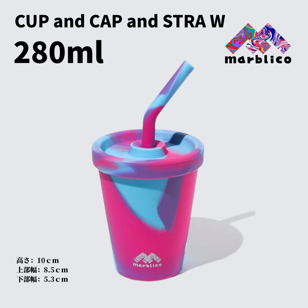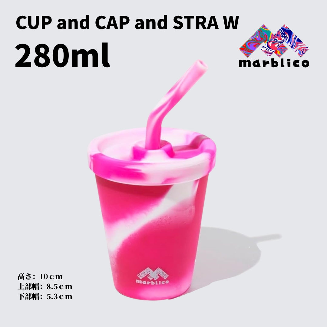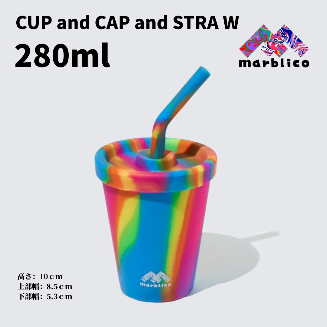 marblico CUP and CAP and STRAWセット 280ml 高さ10cm 上部幅8.5cm 下部幅5.3cm Marblicoブランド商品