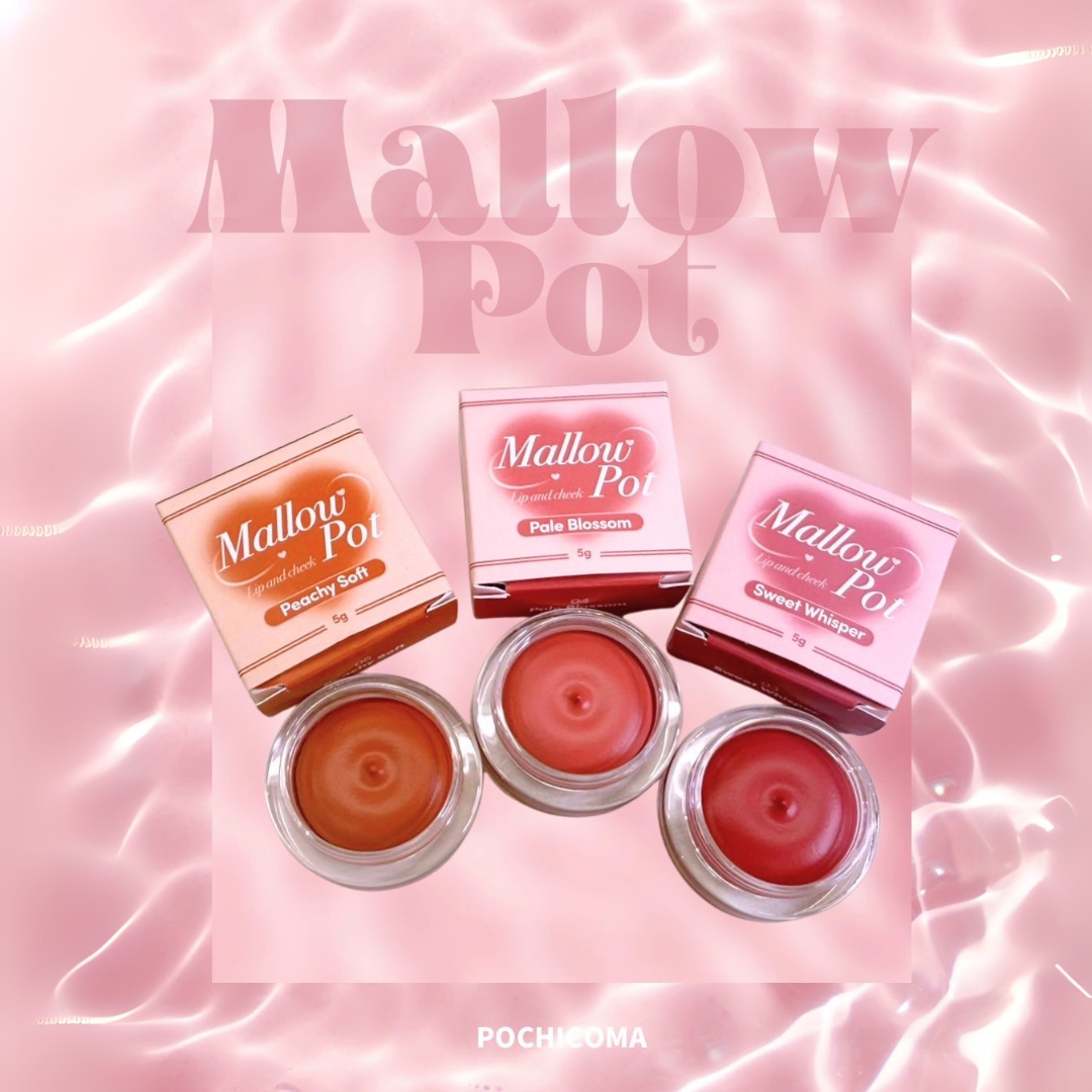 POCHICOMA Mallow Potリップ&チークマルチカラー First Crush Hidden Blush Sweet Whisper Pale Blossom Peachy Soft 5色ヴィーガン処方